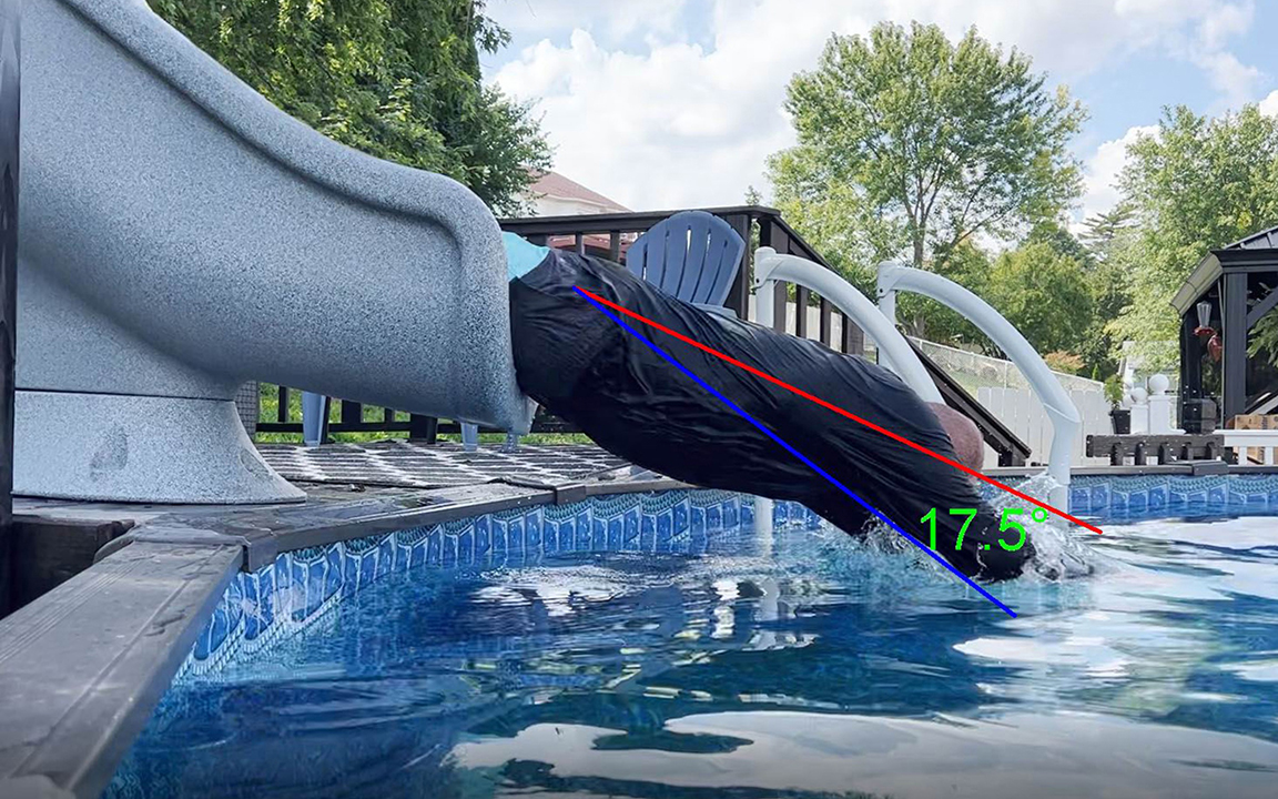 “I still find it very strange that I’ve become some type of expert at going down these slides, but it’s for safety,” says Nick. “The angle of attack is one of the measurements that manufacturers are most concerned with. They want to make sure that when you come off the end of the slide, you don’t skip across the water or plunge straight to the bottom. And if the slide has turns or curves, they want to be sure you’re not going to come up that curve and potentially come off the slide.”